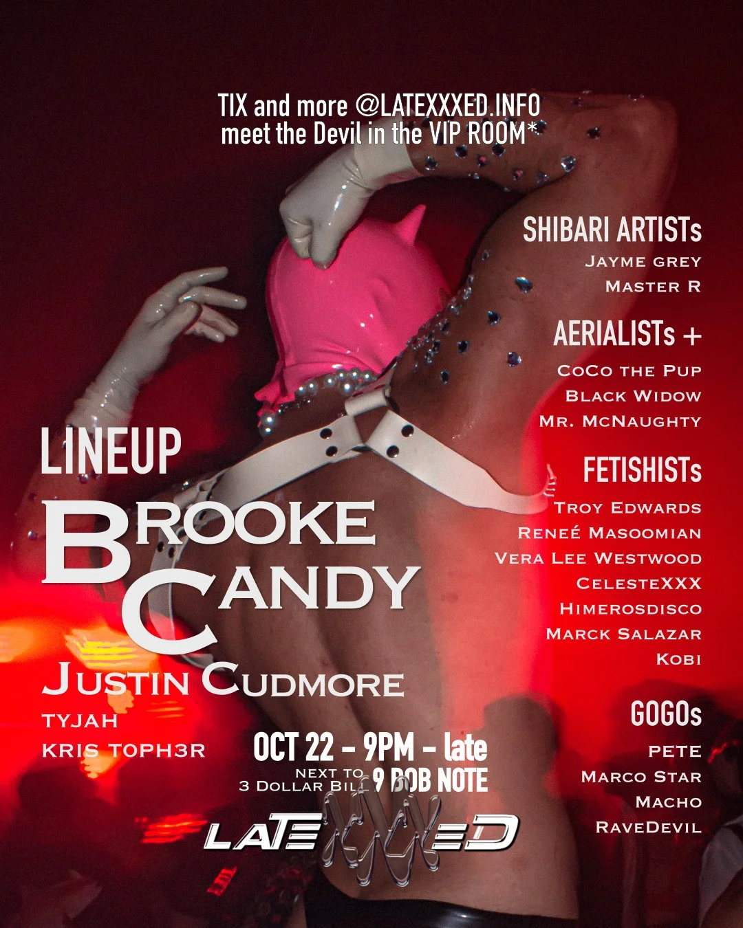 with Brooke Candy - she’ll do a 1 hour DJ set and 30 min performance featuring Shibari installations, and her two new songs - incl. SWANS which releases that Friday Oct 24th 🖤